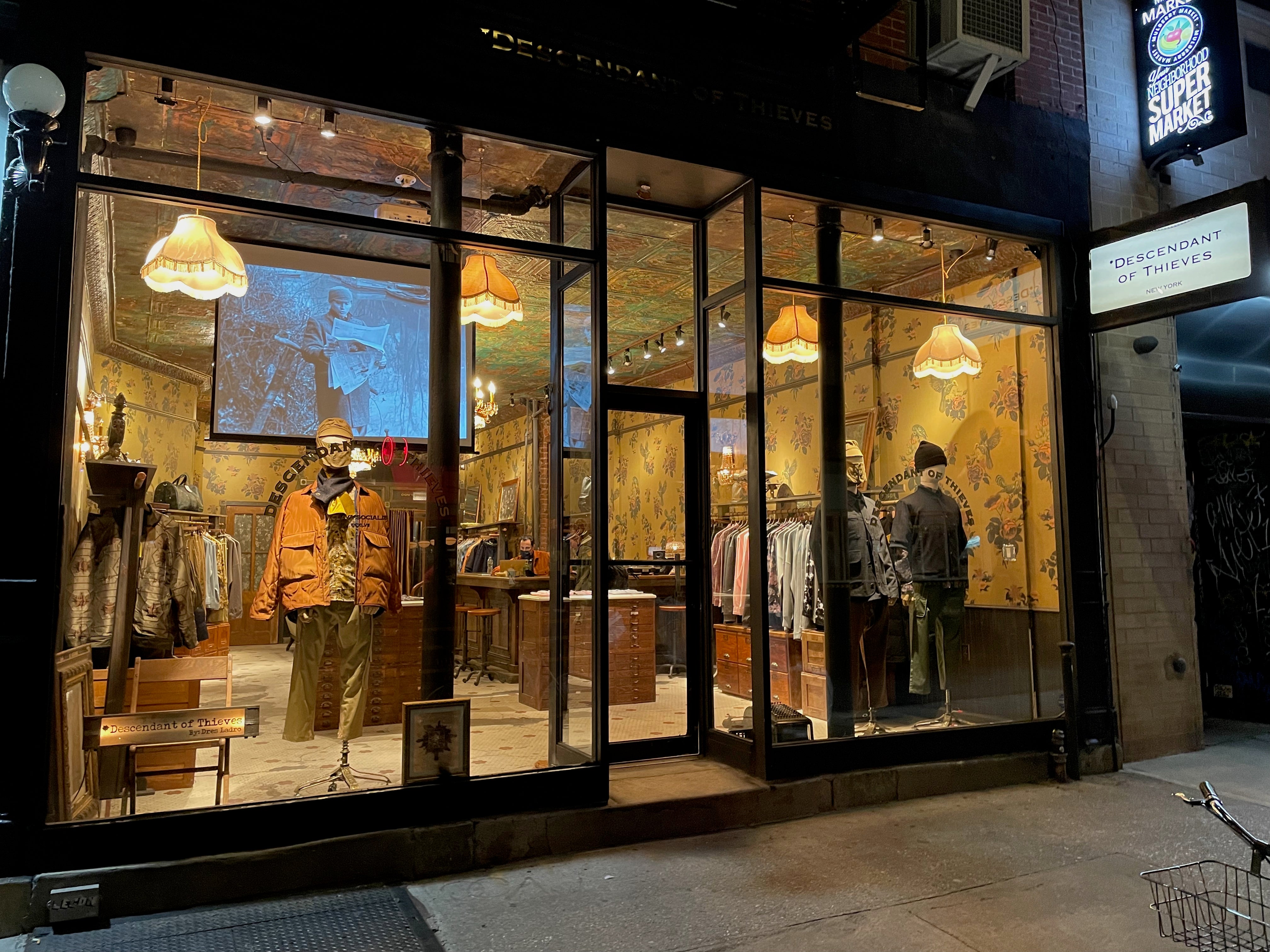 The Descendant of Thieves Bleecker shop is located at an 1800's historic landmark building with ties to old-world independently owned storefronts. We choose this location because it embodies the rich and colorful history of NYC culture, commerce, and community. The brand now has a locale for the nonconformist individual who is part of a cult that rejects the mass market and aligns with craft, character, and individuality.