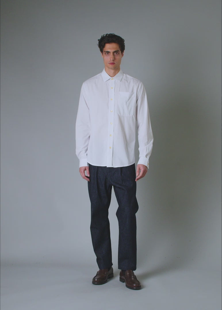 More than a classic button-down. This breathable Egyptian cotton poplin shirt disrupts tradition with engineered precision. The floating front placket hovers above the hem's edge, adding an architectural touch. The elongated chest pocket features a double-layer construction, creating a subtle 3D effect. Built for effortless wearability across seasons. The fabric comes from the Gossypium barbadense cotton plant, known for its extra-long staple (ELS) fibers, which are renowned for softness and durability. Thoughtful details reward those who pay attention. A shirt for those who appreciate the art of design.