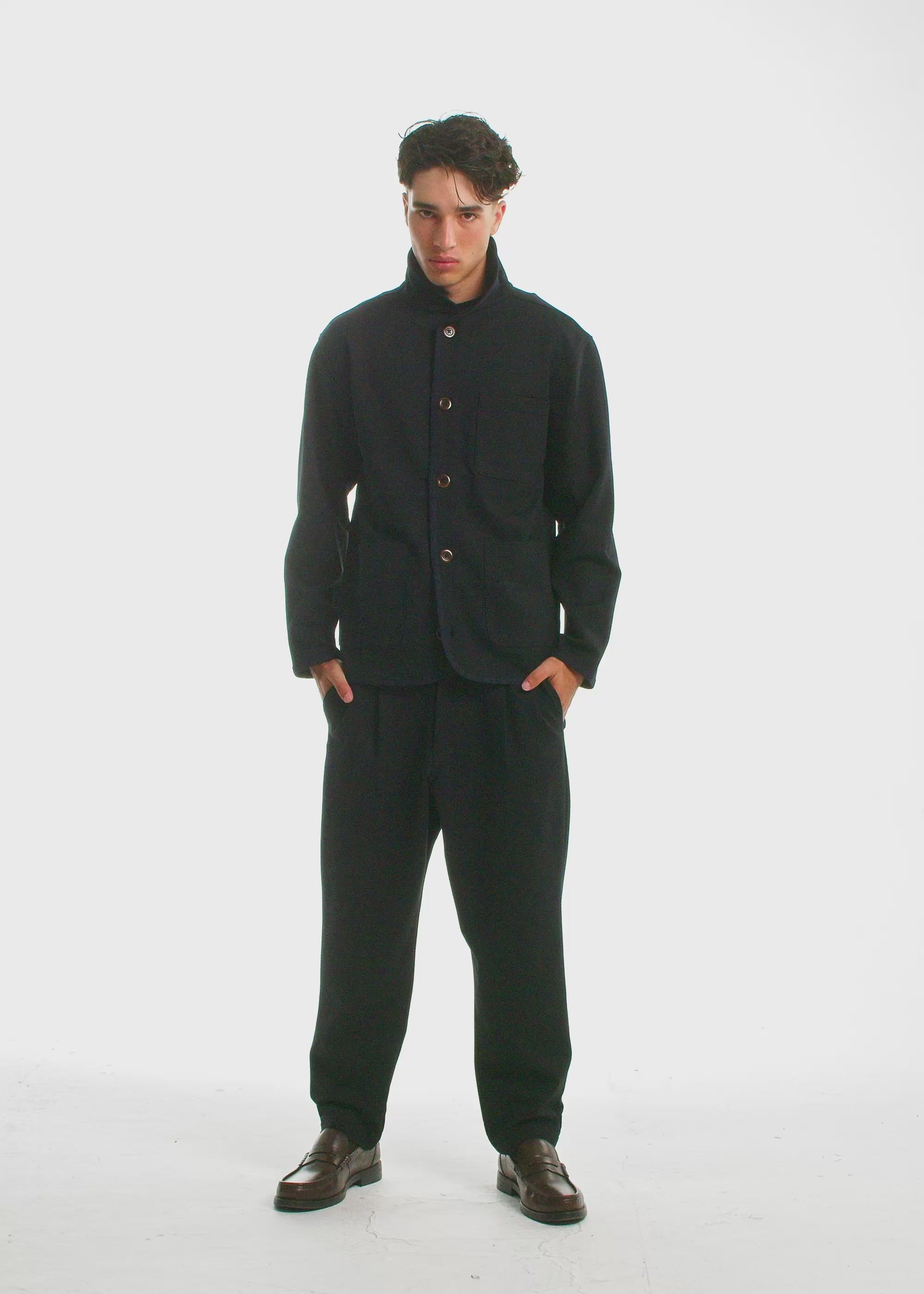 Soft to the touch. Hard on the competition. Cut from a velvet-hand fabric that feels as refined as it looks, this piece carries quiet confidence. The subtle trim along the placket and collar frames the silhouette. The luxurious corozo buttons are carved from the nut of a South American palm tree. Each one is polished by hand, giving a subtle sheen and natural variation. The relaxed structure and curved collar bring a sense of understated sophistication. Wear the collar up or down depending on your mood or your defiance.