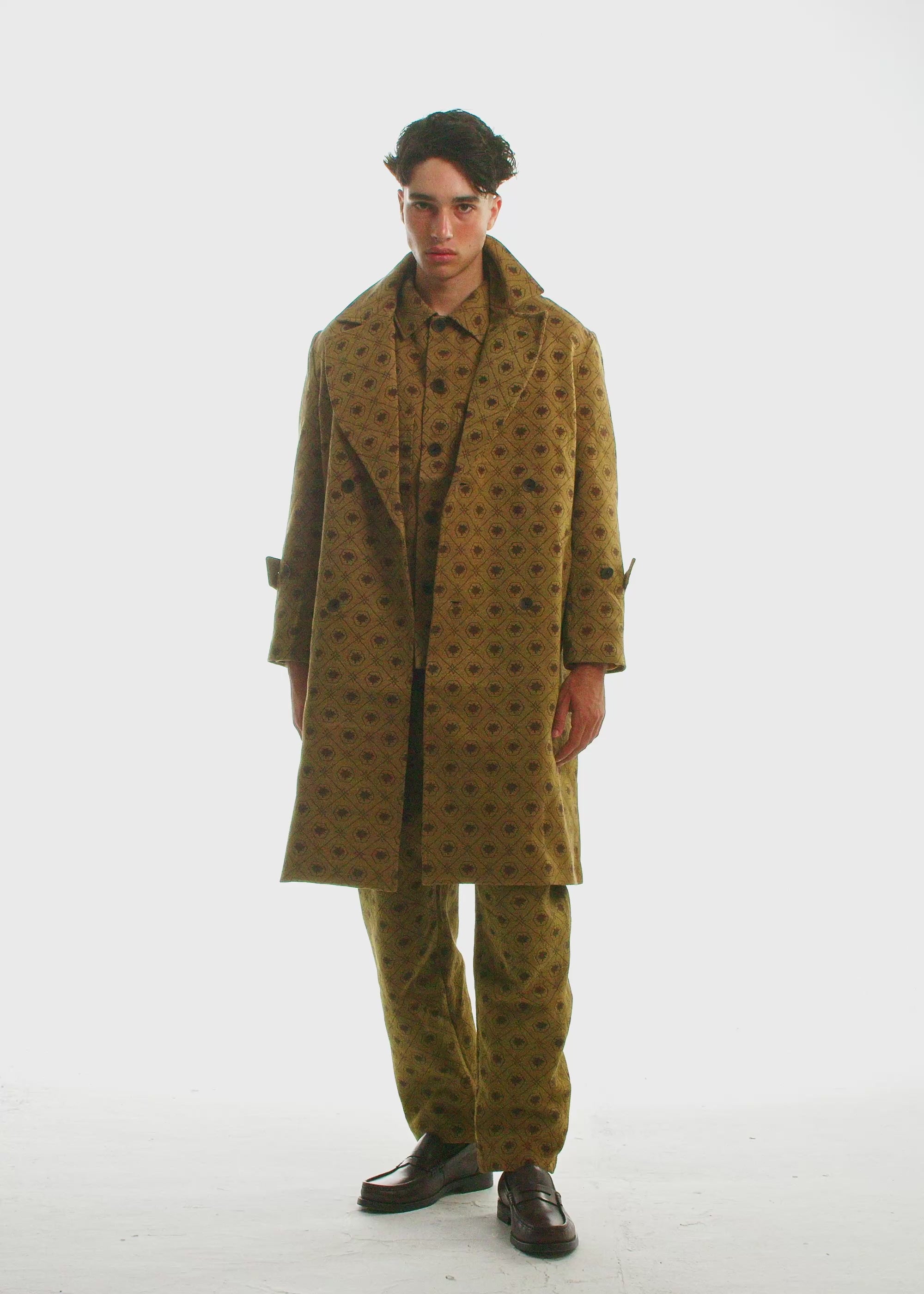 This mid-weight double-breasted piece is built to stand out. The oversized lapel and sharp tailoring nod to classic overcoats. The button-back vent makes your outfit unique from all angles. The tapestry Jacquard is handwoven in limited batches by skilled artisans on old world narrow-width looms. A distinctive pieces found nowhere else.