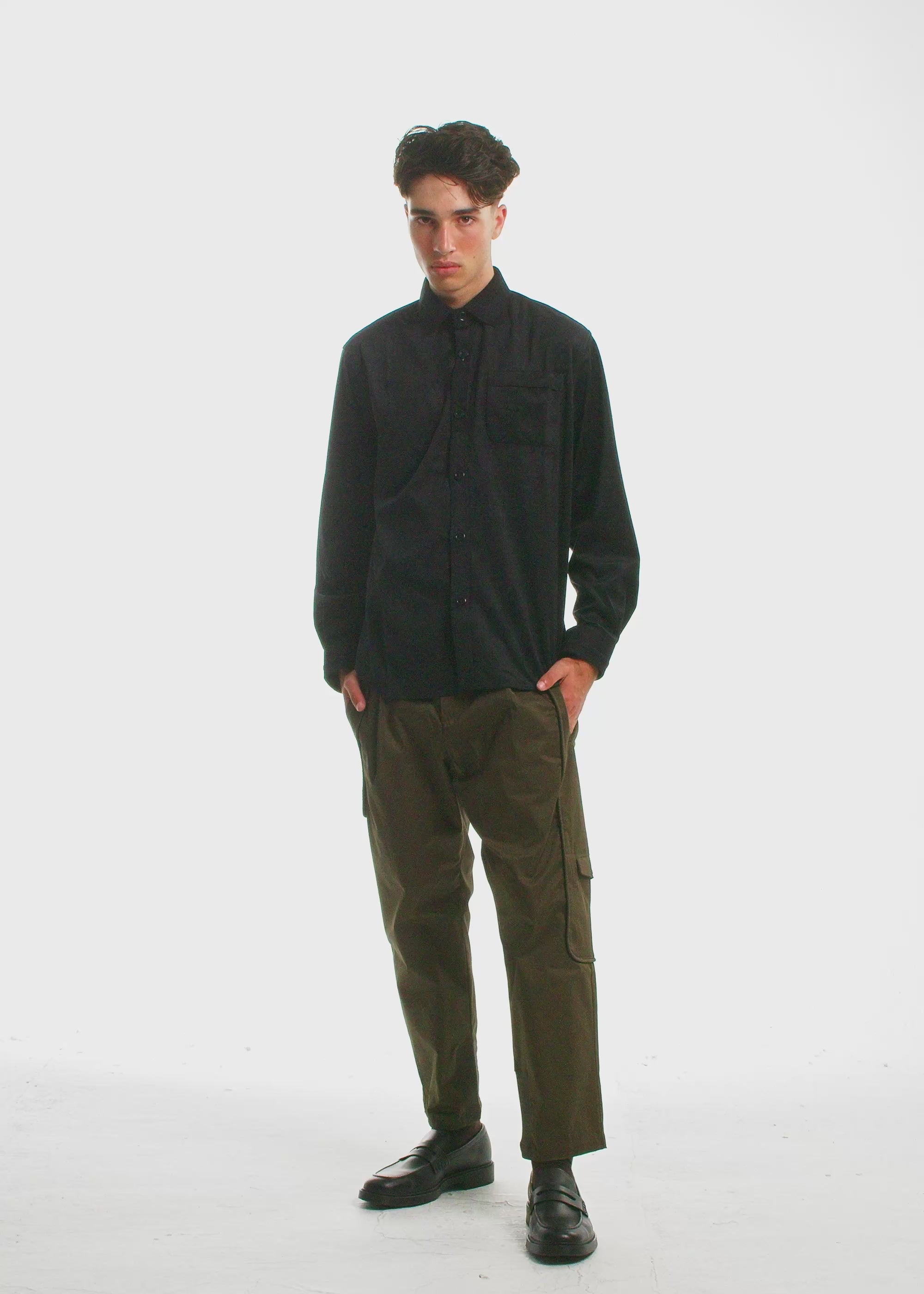 Cut from a black fine-wale corduroy with a technical weave that delivers uncommon softness. The smooth pile provides comfort with equal durability, maintaining its shape and color over time. Built to be worn on repeat. Finished with corozo buttons carved from the nut of a South American palm.