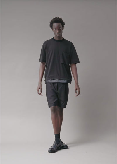 BlackThis mid-weight tee stands out with its unique design. The short-sleeve crew features a sateen hem with a pull string, allowing you to tailor your look. Adjusting the drawstring gives you a clean, tucked-in look that falls perfectly to your waistline. Leaving the drawstring relaxed showcases an alternative fabric hem that changes your look. The material is a textured rib knit fabric with vertical micro channels woven directly into the surface. The ribbing adds natural stretch and structure, allowing the shirt to hold its shape without clinging.