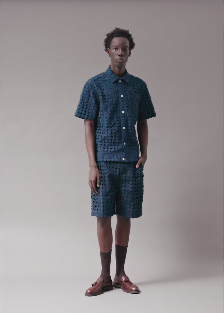 A striking embroidered shirt. Each circular embroidery piece is created at a specialized embroidery house, then carefully applied by our craftsmen onto premium cotton. The embroidery lives on the surface. Your body touches only soft cotton. The embroidered surface adds substance to the fabric, giving the shirt a deliberate weight with significant presence.